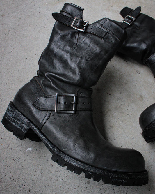 ATTACHMENT by Kazuyuki Kumagai 00s Garment-Dyed Distressed Leather Engineer Boots