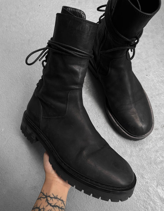 Ann Demeulemeester AW19 ‘Louisse’ Backlace Nubuck Leather Boots