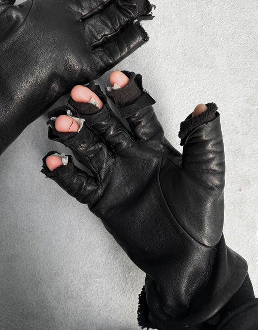 HYBRID AW21 “Order; Chaos. [If I Cut My Hair California Will Sink]” Black Bateman Leather Gloves
