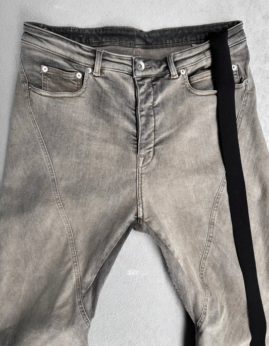 Rick Owens DRKSHDW AW23 “LUXOR” Mineral Wash ‘Bias’ Spiral Flare Bootcut Denim