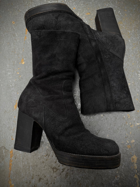 Rick Owens AW09 "CRUST" Side Zip Reverse Cow Leather Creeper Boots