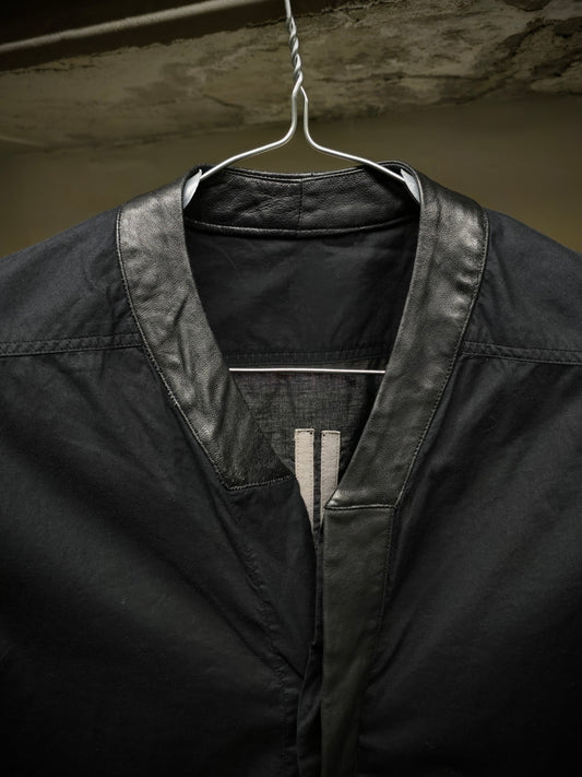 Rick Owens SS16 "CYCLOPS" Calf Leather Trim Mandarin Collar Shirt