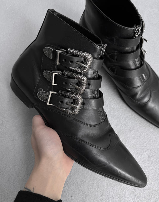 Saint Laurent Paris SS19 Western Buckle Belted ‘Stan’ Ankle Boots