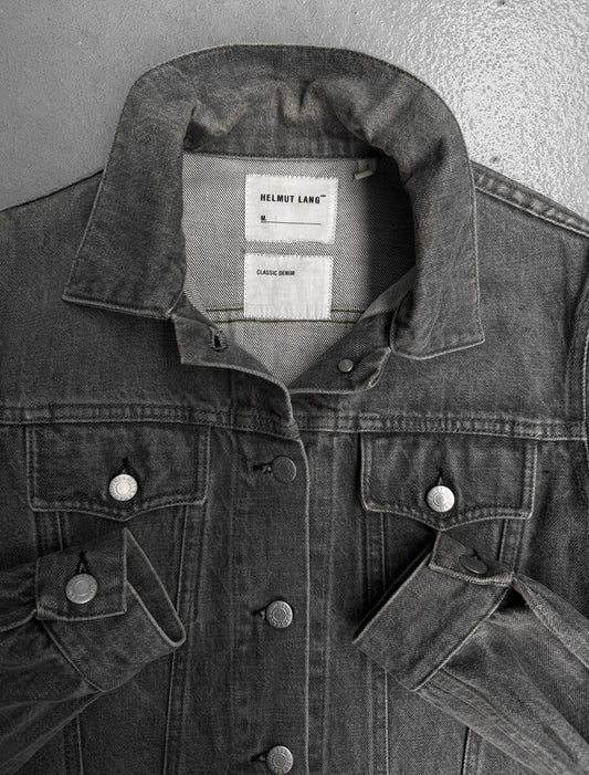 Helmut Lang Early 00s Washed Black Denim Trucker Jacket