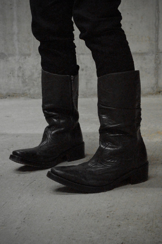 Hiromu Takahara Early 00s Tall Western Cowboy Zip Leather Boots
