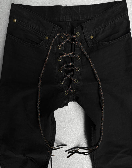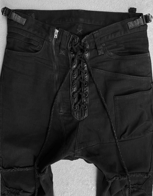 IfSixWasNine Early 00s ‘NO. LU/ SBCM’ Sarrouel Black Lace-up Skinny Zip Denim