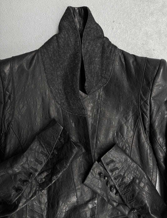 IfSixWasNine Post-2010 ‘NO. Black Jaguar / JK’ Reptile Calfskin Leather Blazer