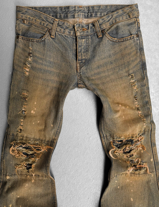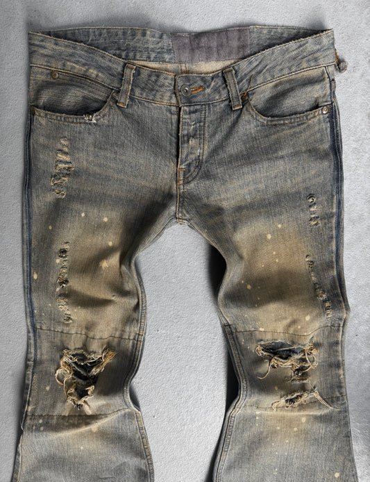 IfSixWasNine Early 00s 'NO. MUD MAX/SBCM 0305ADK' Distressed Flared Denim