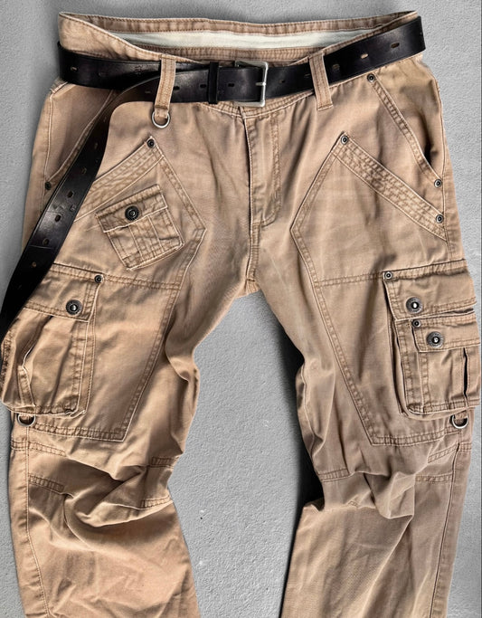 InTheAttic Early 00s Beige Bootcut Military Cargo Pants