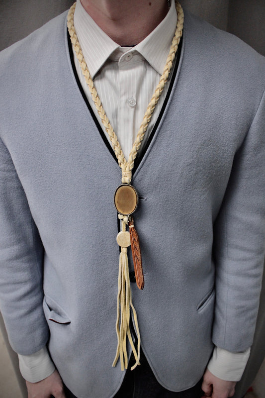 Isamu Katayama “BACKLASH” Feather & Horn Pendant Deerskin Leather Necklace