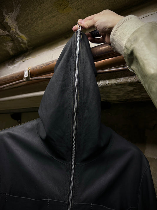 Isamu Katayama "BACKLASH" Unlined Overlock Hooded 'Gimp' Zip Goat Leather Jacket