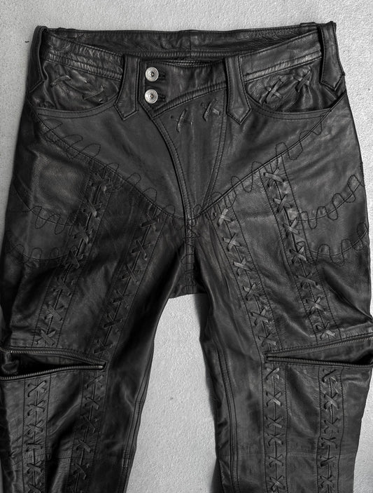 Yasuyuki Ishii Early 00s Cross Studded Lace-up Flare Leather Pants