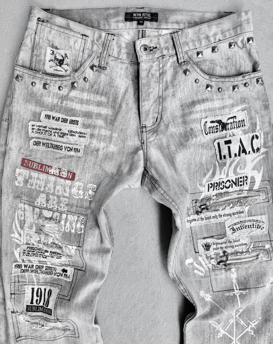 InTheAttic Early 00s Bleach-dyed Punk Patchwork Bootcut Flare Denim