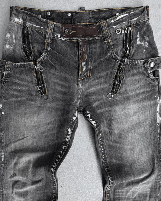 SemanticDesign Early 00s Multi-zip Paint Splattered Flare Denim