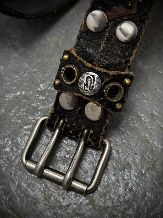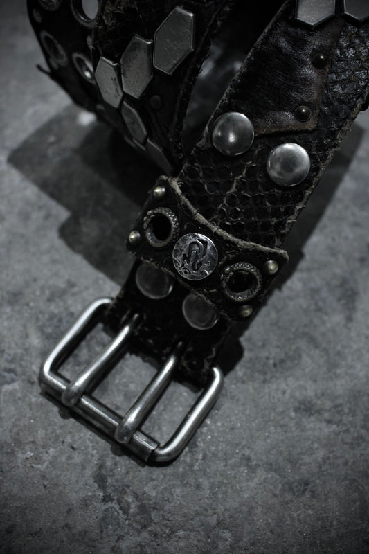 KMRii AW24 ‘Grand Cross II’ Studded Patchwork Calfskin Leather Belt