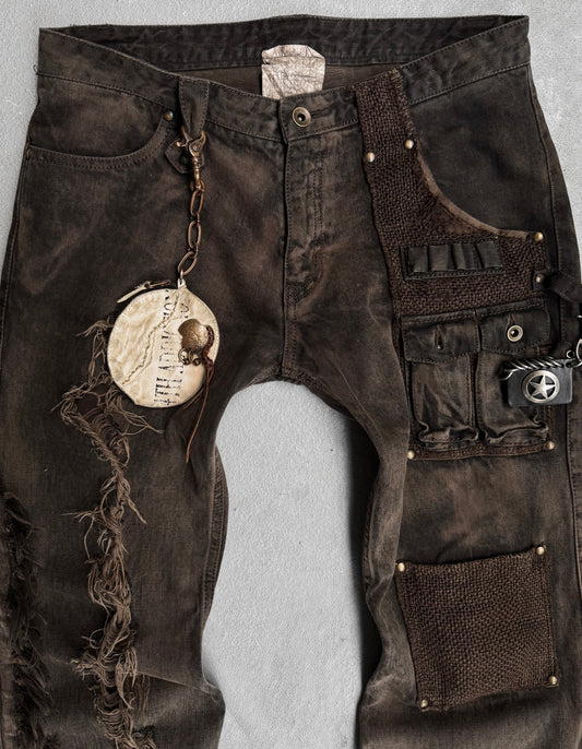 LED RECHWE Early 00s Hybrid Corduroy ‘Sword’ Western Frayed Flare Denim
