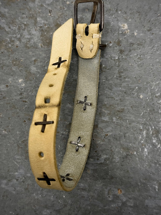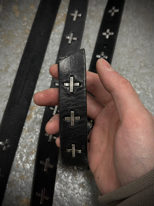 m.a+ by Maurizio Amadei 'EQ2C' GR 3.0 .925 Silver Cross Studded Cow Leather Belt