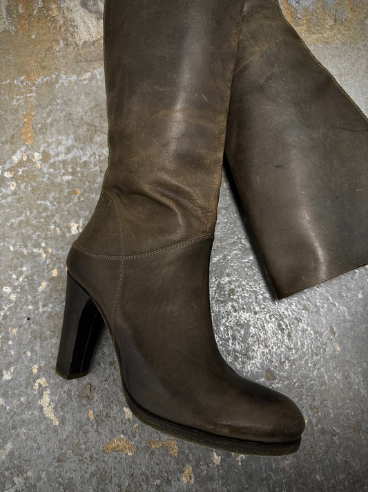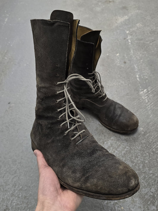 m.a+ by Maurizio Amadei 2010s Tall Lace-up Reverse Cow Leather Gothic Boots