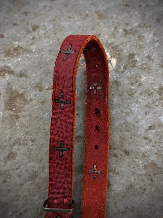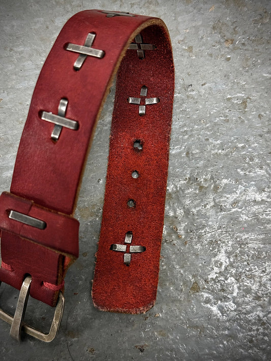 m.a+ by Maurizio Amadei 'A-F2B1' BI 3.0 .925 Silver Cross Skinny Red Bison Leather Skinny Wristband