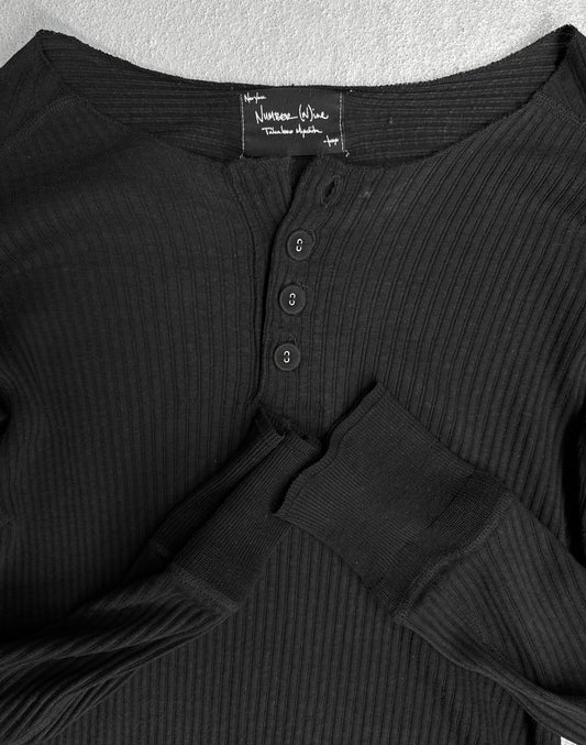 Number (N)ine AW09 Black Henley Silk-blend Long-sleeves