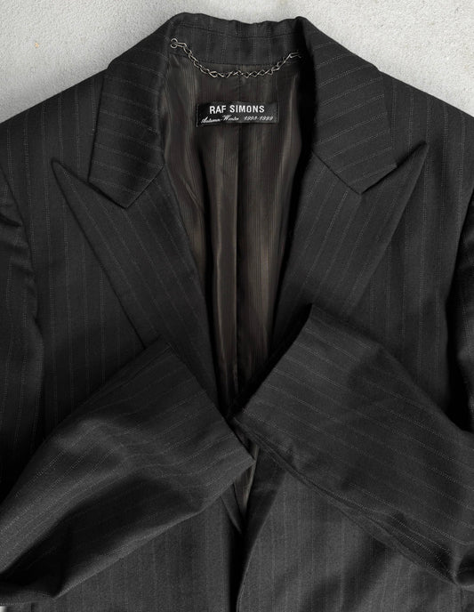 RAF SIMONS AW98-99 “Radioactivity” Satan Lapels Wool Pinstripe Long Coat