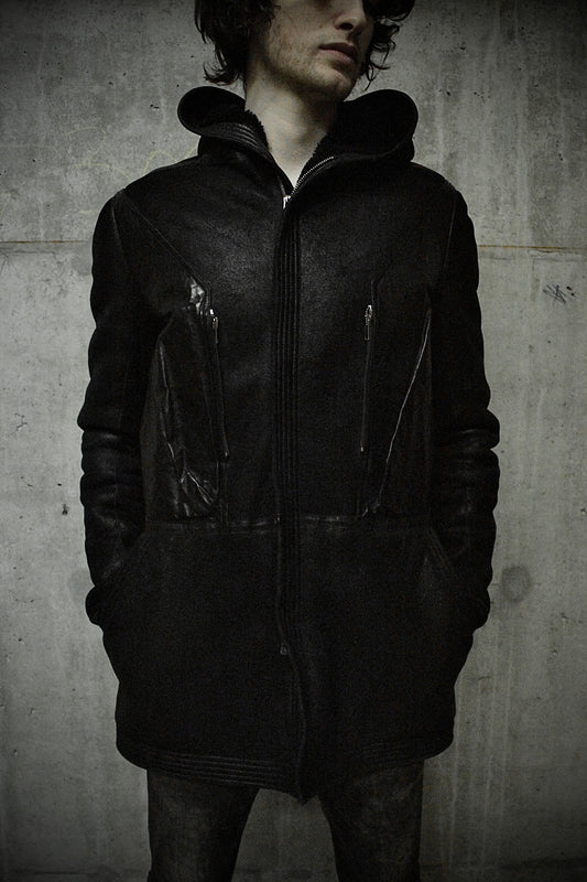 Rick Owens AW12 "MOUNTAIN" Hooded Blistered Lamb Leather Shearling Jacket
