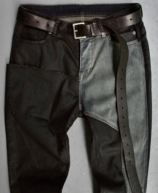 Rick Owens DRKSHDW SS19 “BABEL” Waxed Combo Detroit Cropped Jeans