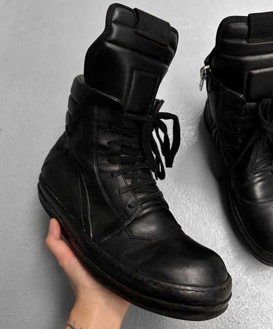 Rick Owens AW18 “SISYPHUS” All-black Calfskin Leather Geobasket Sneakers
