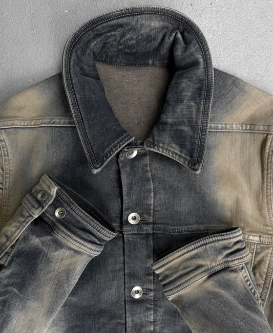 Rick Owens DRKSHDW SS23 "EDFU" MINERAL PEARL DEGRADE Cropped Denim Jacket