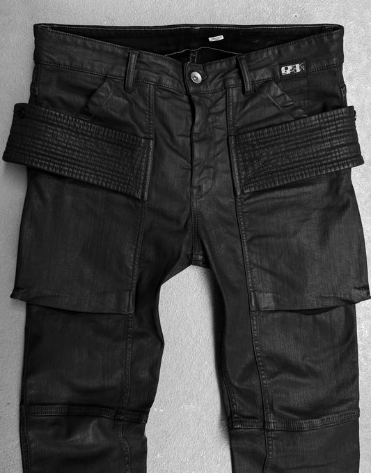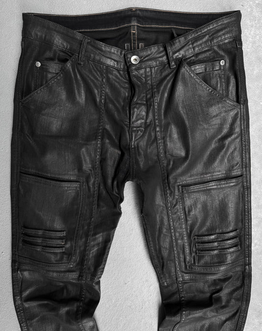 Rick Owens AW24 "PORTERVILLE" Coated Bauhaus Denim Cargo Zip Pants