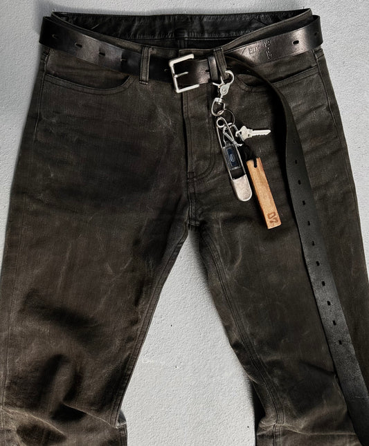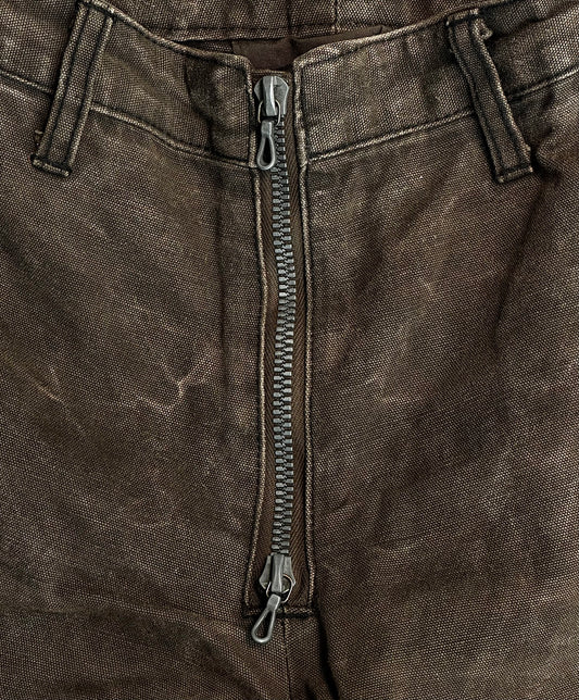 RipVanWinkle Early 00s ‘Front-zip’ Distressed Wax Bootcut Denim