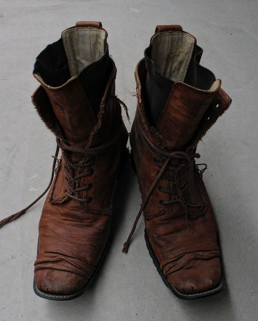 roen by Hiromu Takahara Early 00s Distressed Leather Hybrid Lace-Up Pirate Boots