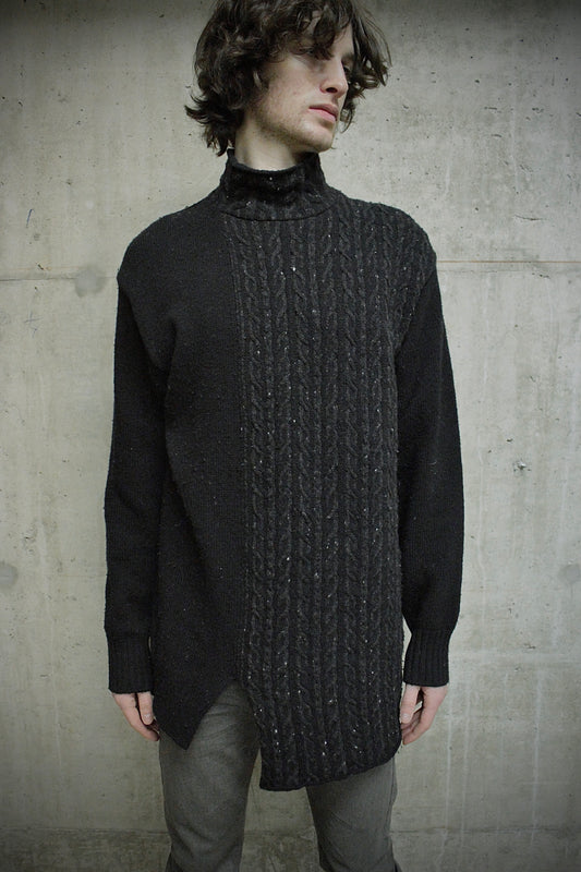 Yohji Yamamoto POUR HOMME AW23 Asymmetric Cable Knit Mock Neck Jumper