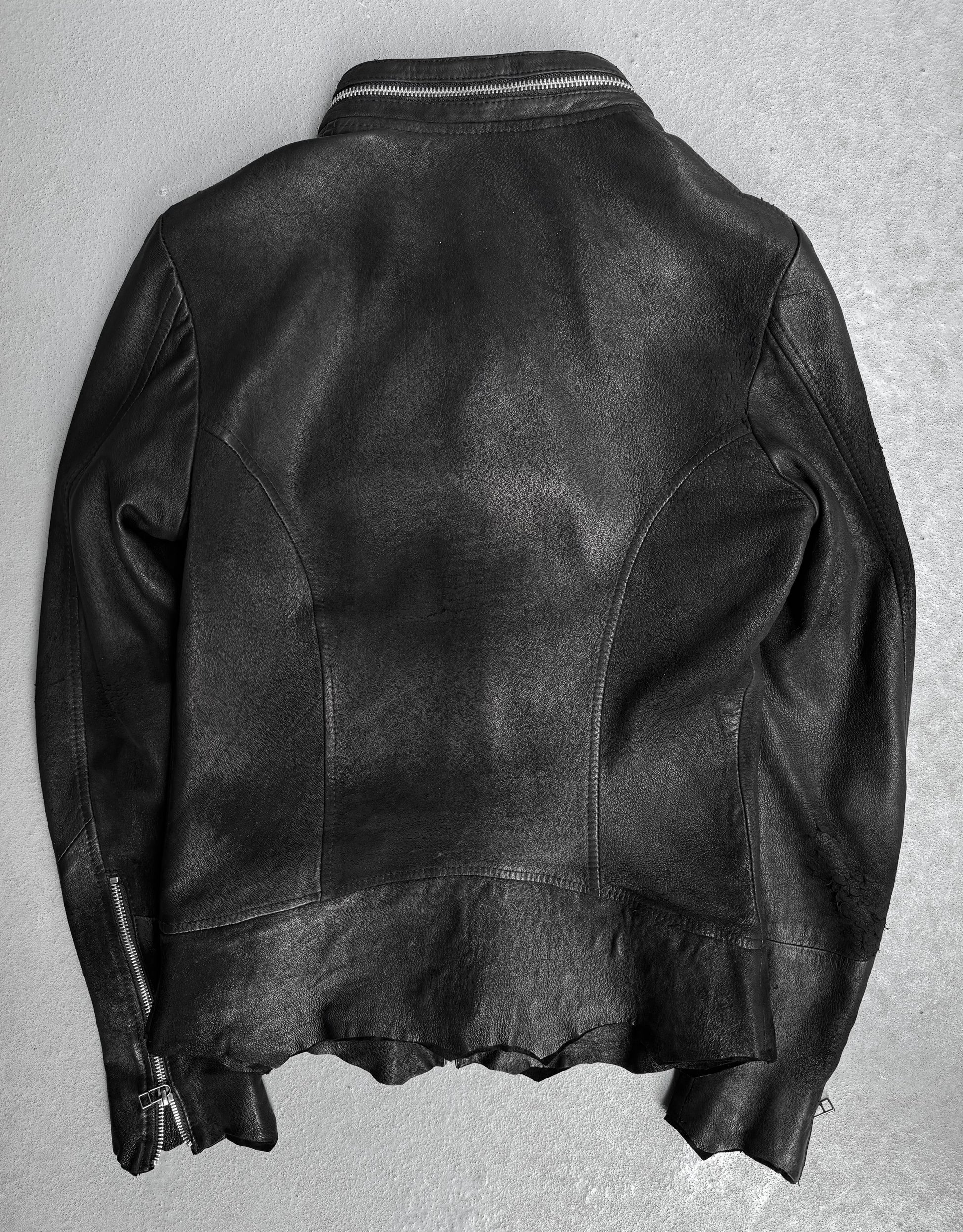 14thAddiction Distressed Sheepskin Leather Cross-zip Jacket