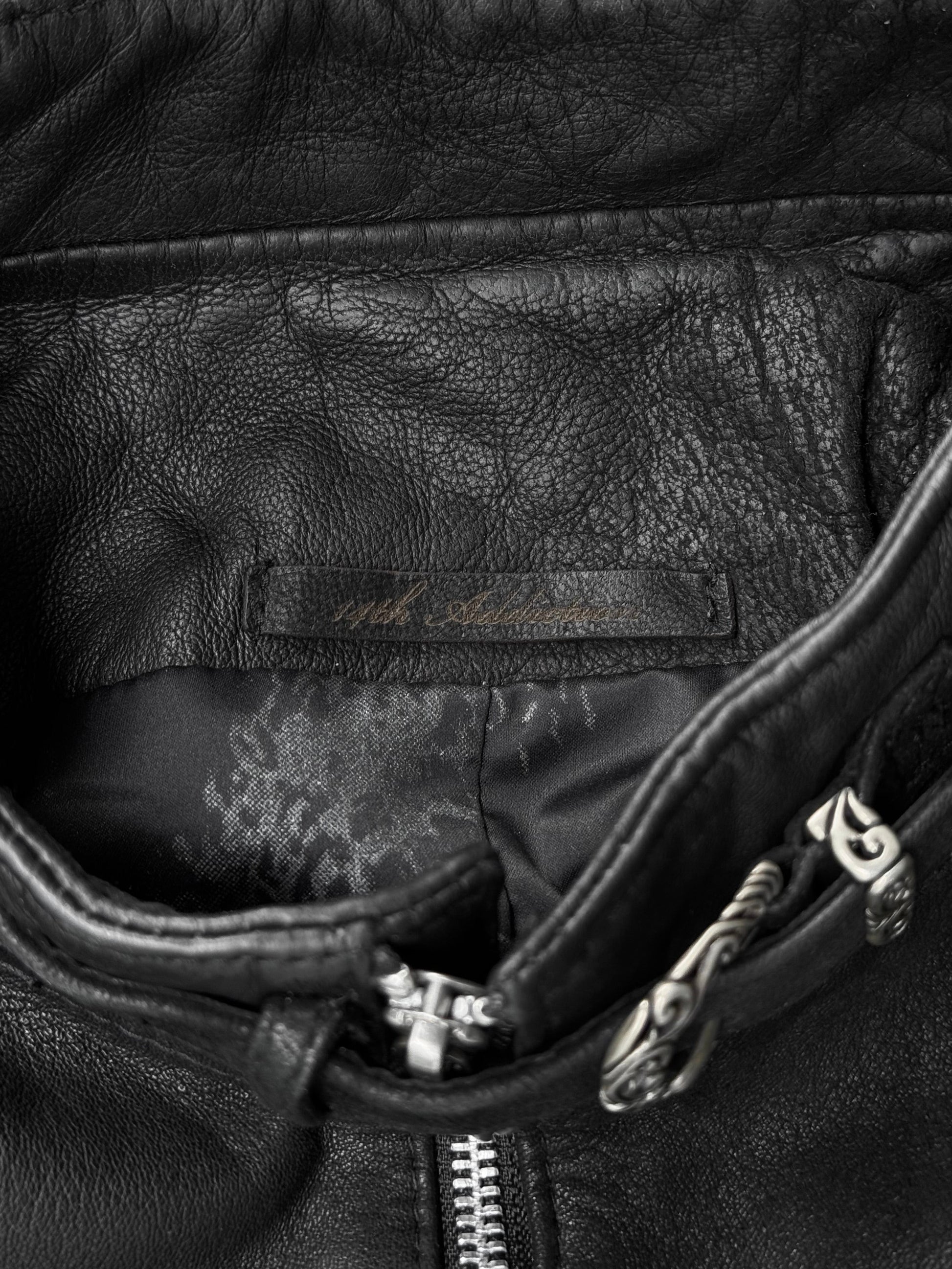 14th Addiction is a Japanese fashion label established in 2007 by designer Teruki Uchise, who previously founded KMRii. The brand is renowned for its avant-garde aesthetic, blending traditional military silhouettes with premium leathers and a romantic rock-and-roll sensibility. Uchise’s global experiences, including time spent in Mexico learning jewelry and leather craftsmanship, heavily influence the label’s artisanal approach. 14th Addiction’s collections encompass apparel, outerwear, and accessories, characterized by distressed textures, intricate detailing, and a fusion of punk motifs with high-quality materials.