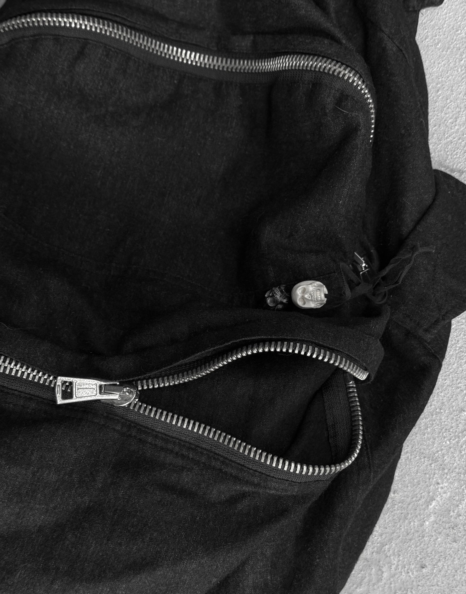 Ann Demeulemeester 2010s Skull Charm Wool Ramie Backpack