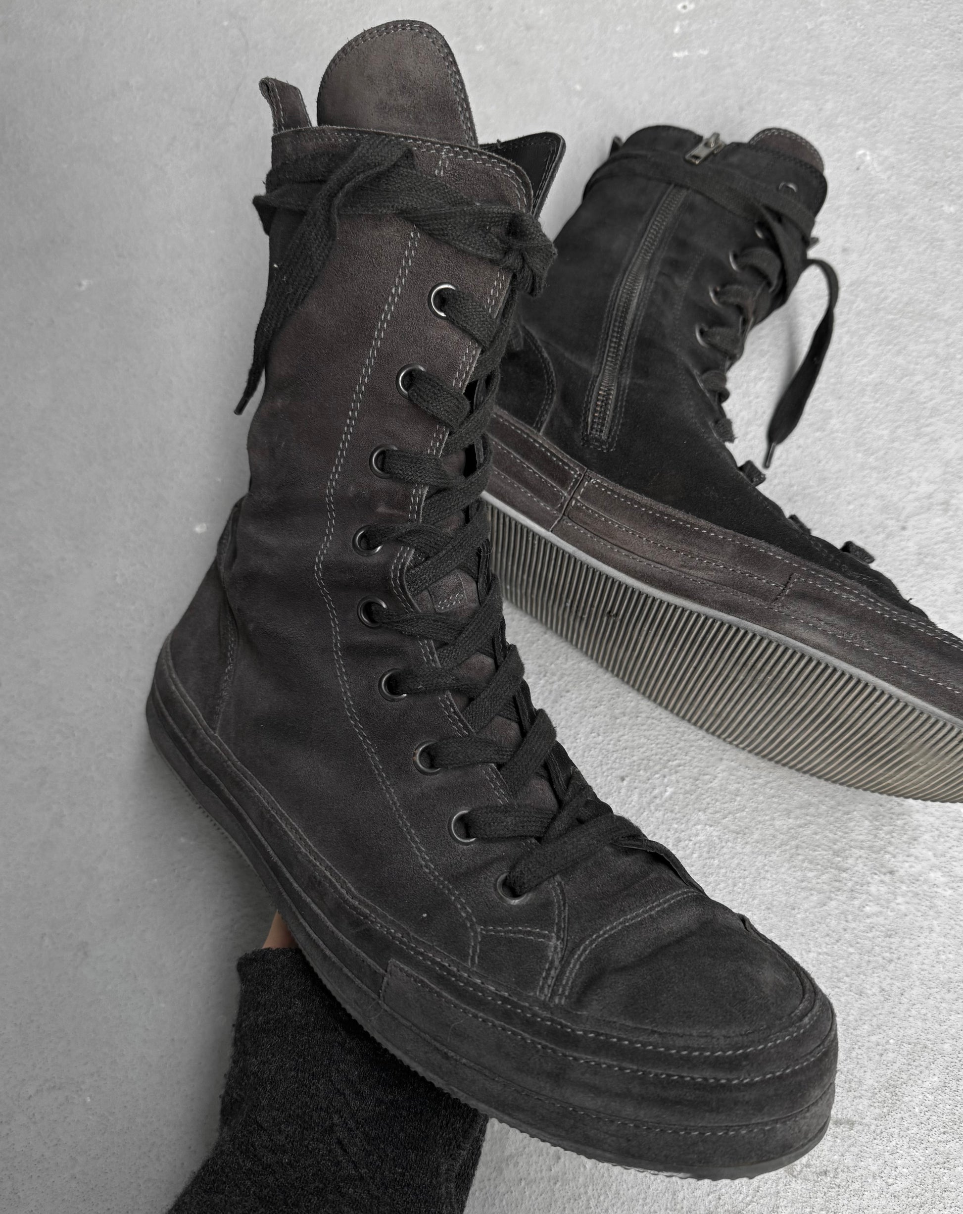 Ann Demeulemeester Scamosciato Two-toned Black Suede High-top Sneakers