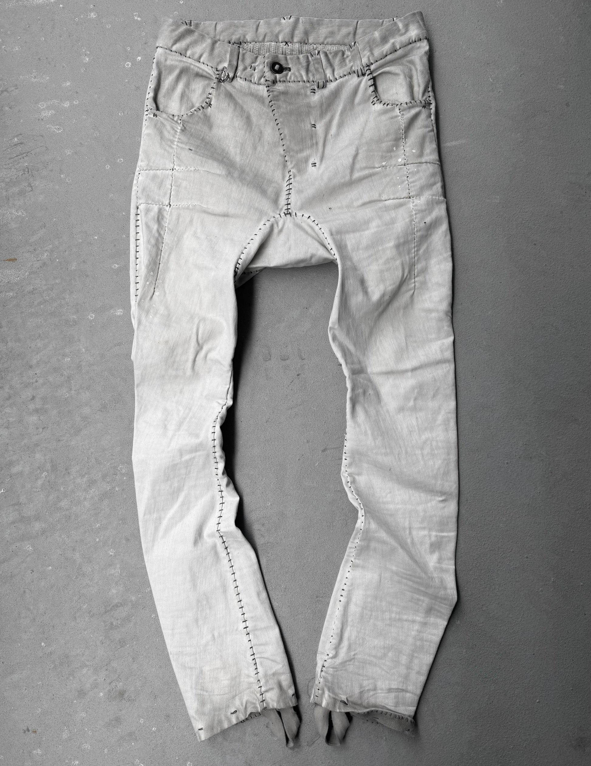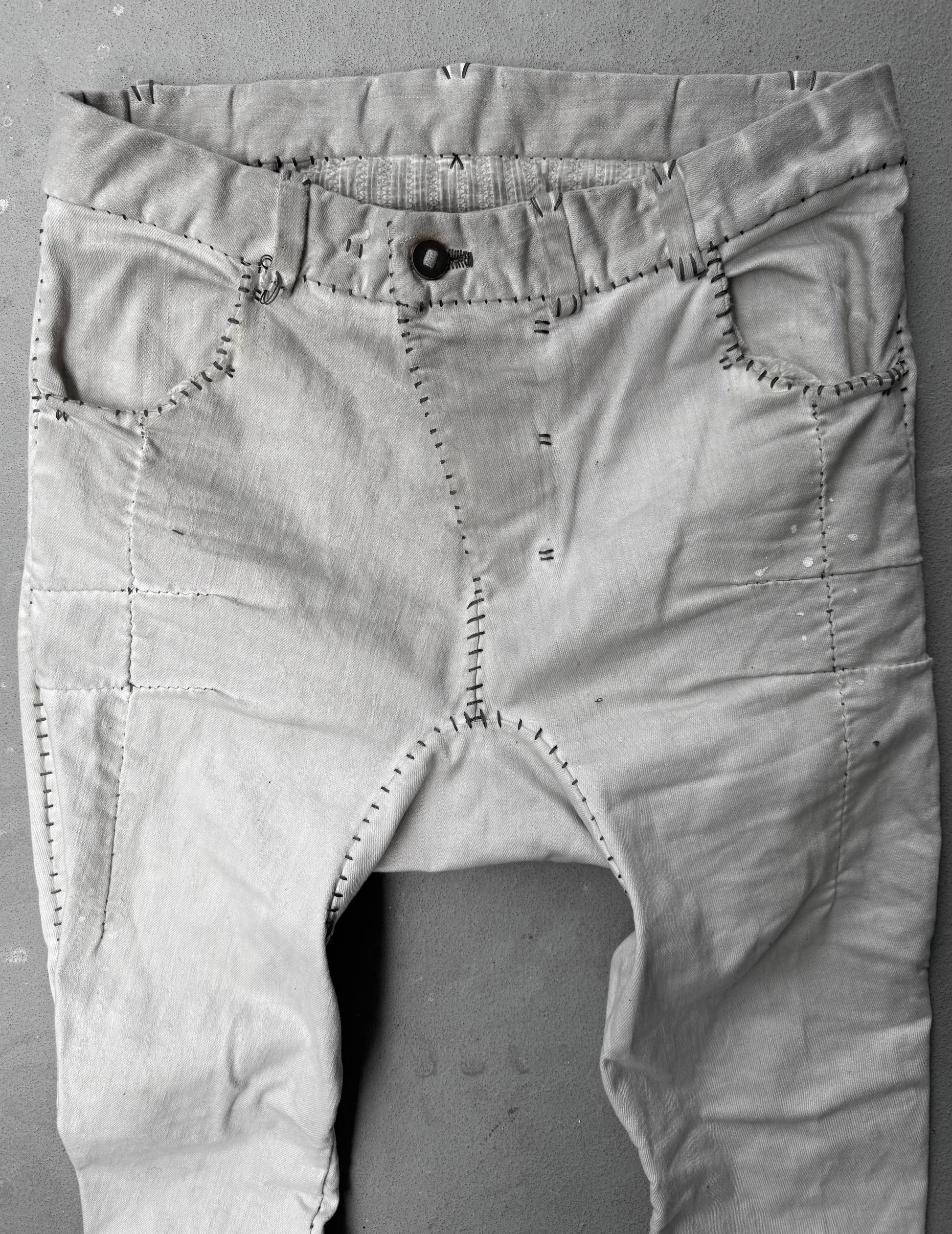 Boris Bidjan Saberi AW21 ‘P13-HS-TF’ Faded Light Grey Resin-Dyed Hand Stitch Denim