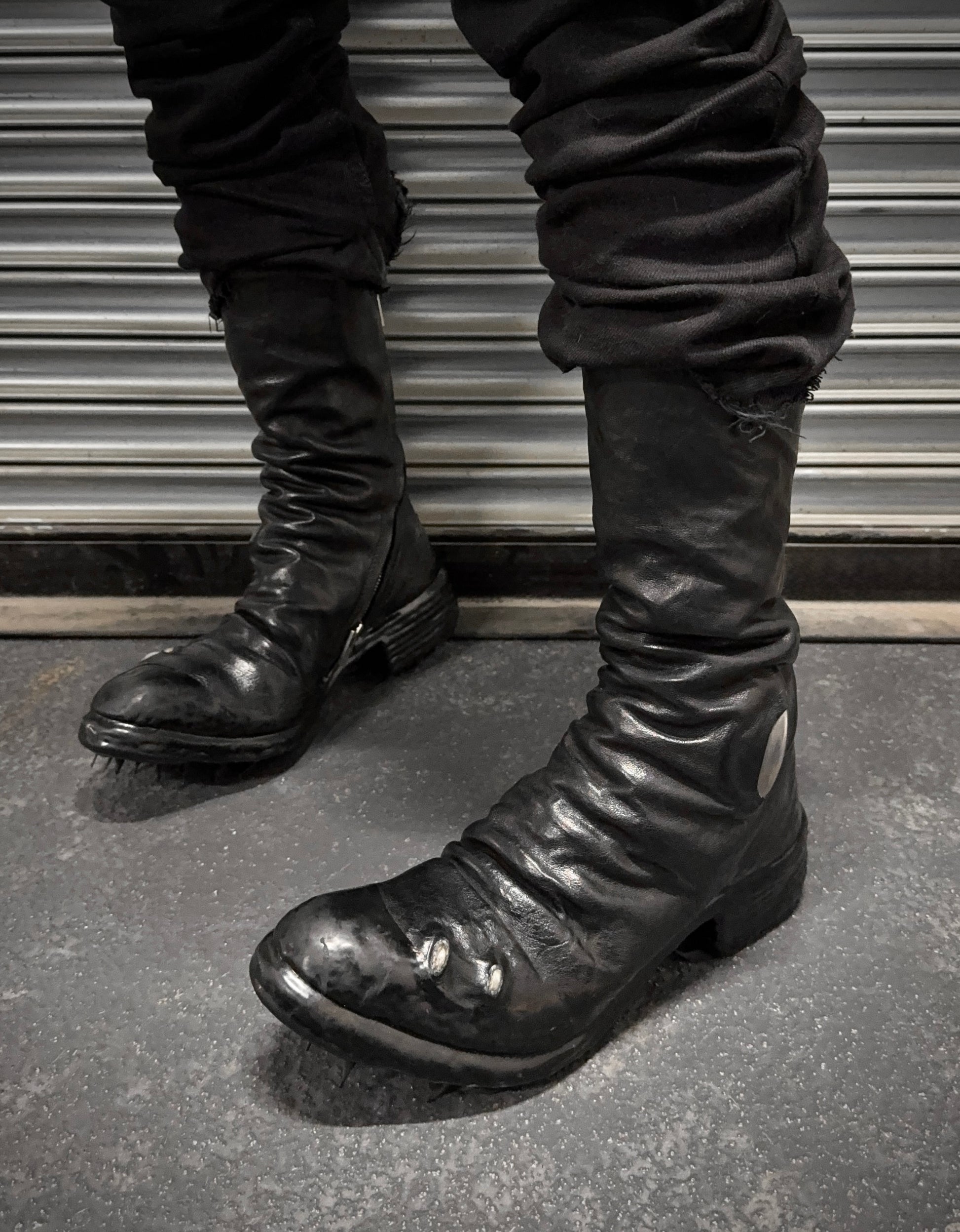 Carol Christian Poell ‘AF/0907PR ROOMS-PTC/10’ Black Objet-dyed Kangaroo Leather Titanium Prosthetic Drip Tornado Zip Boots
