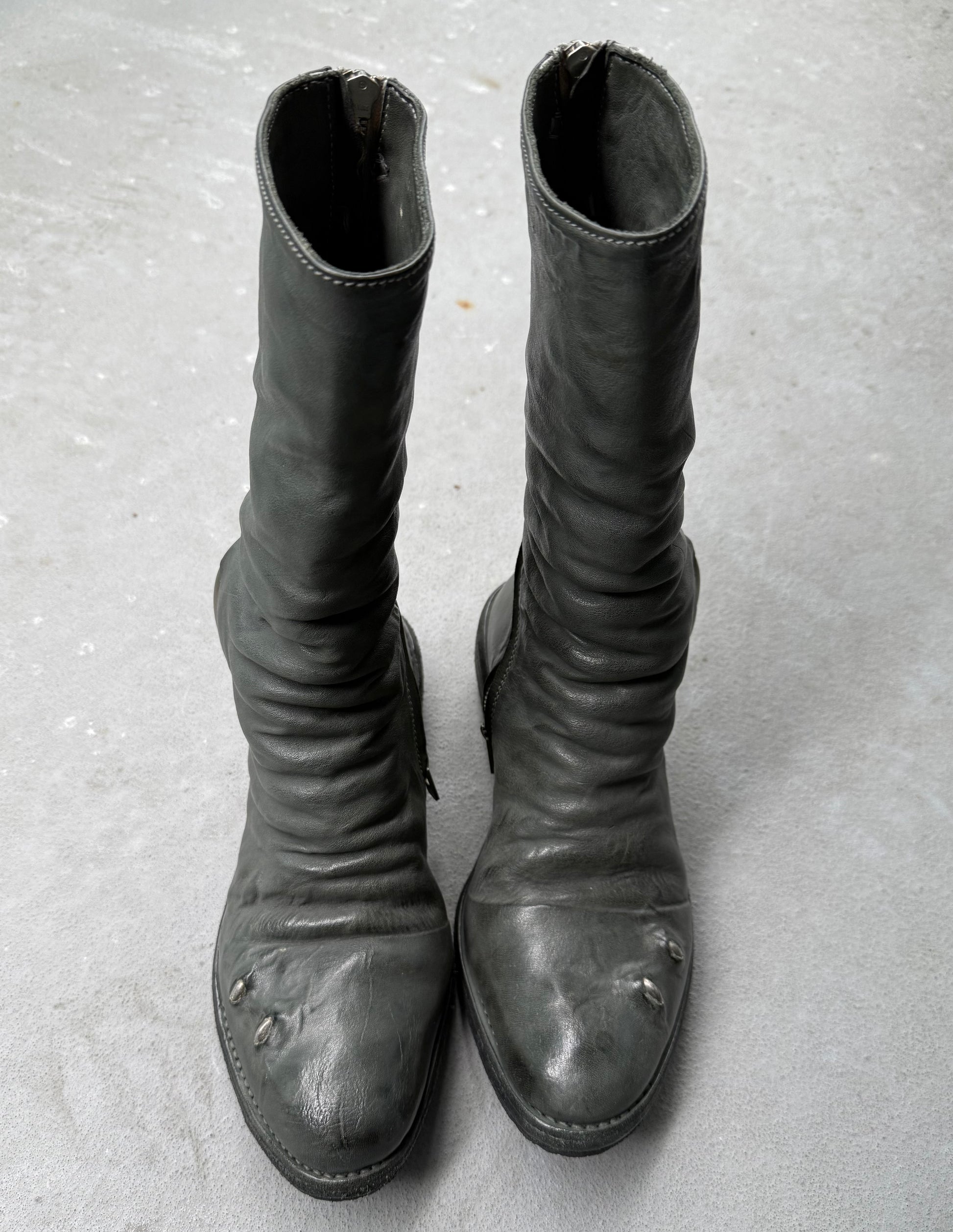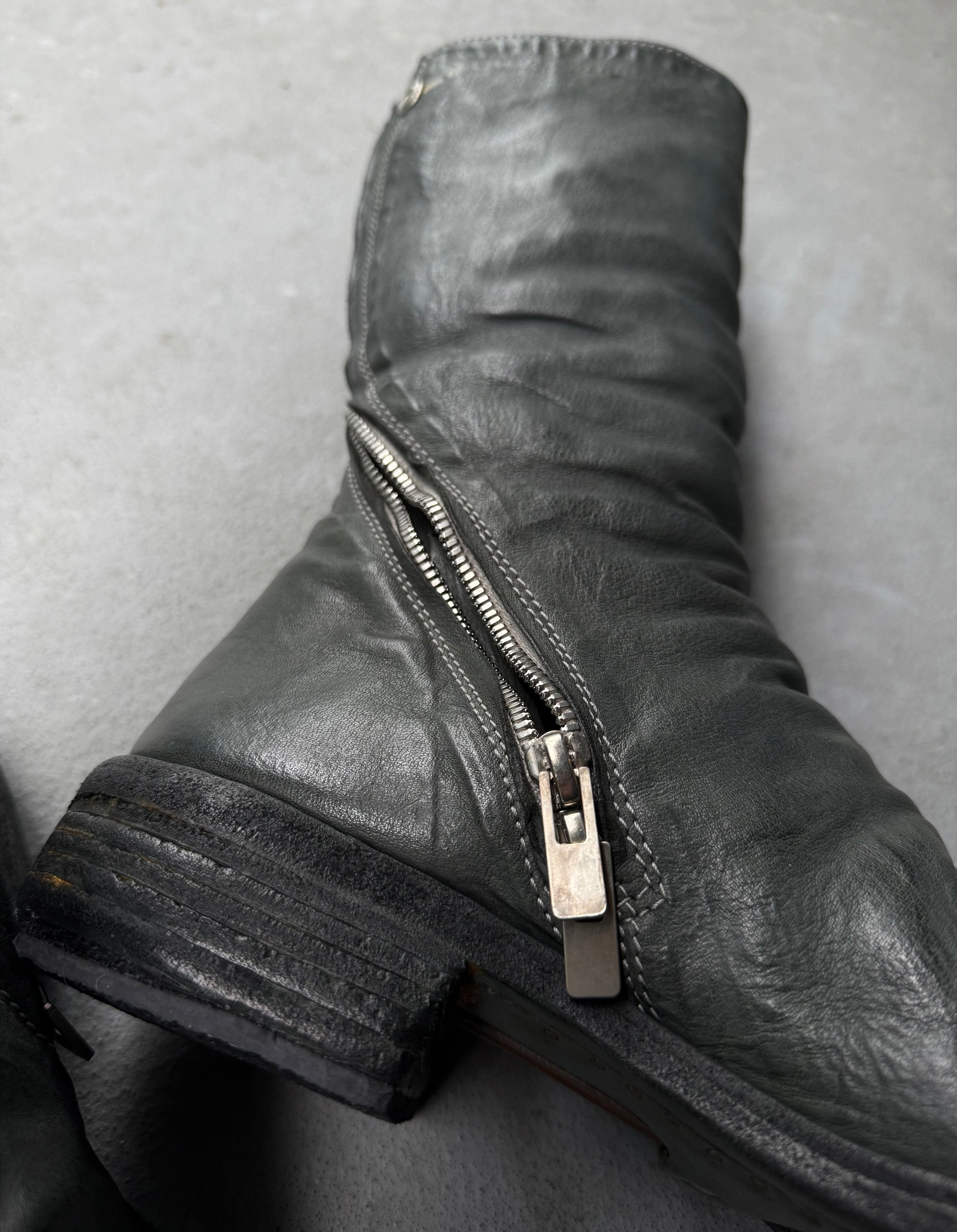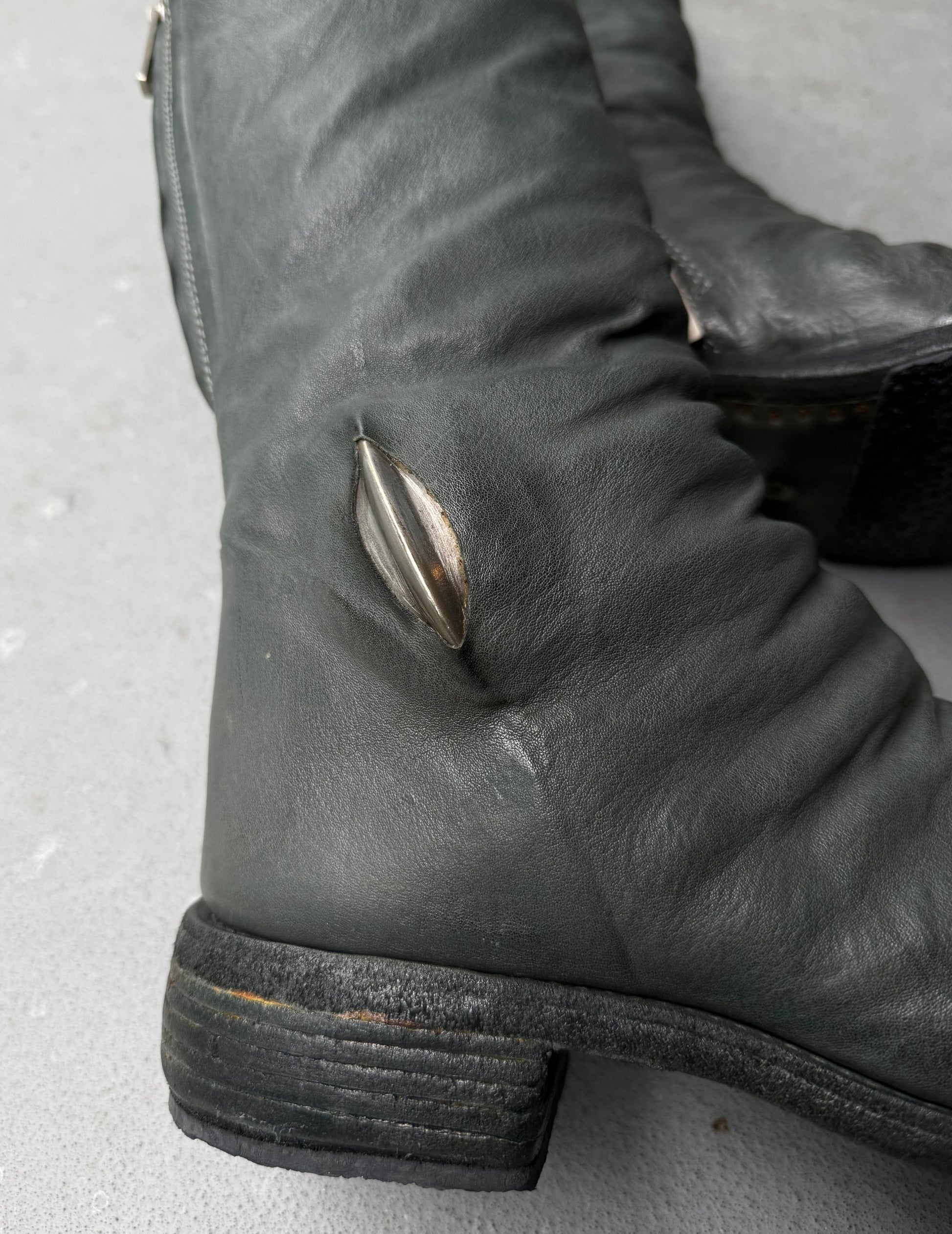 Carol Christian Poell ‘AM/2687P ROOMS-PTC/19’ Kangaroo Leather Titanium Prosthetic Tornado Zip Boots