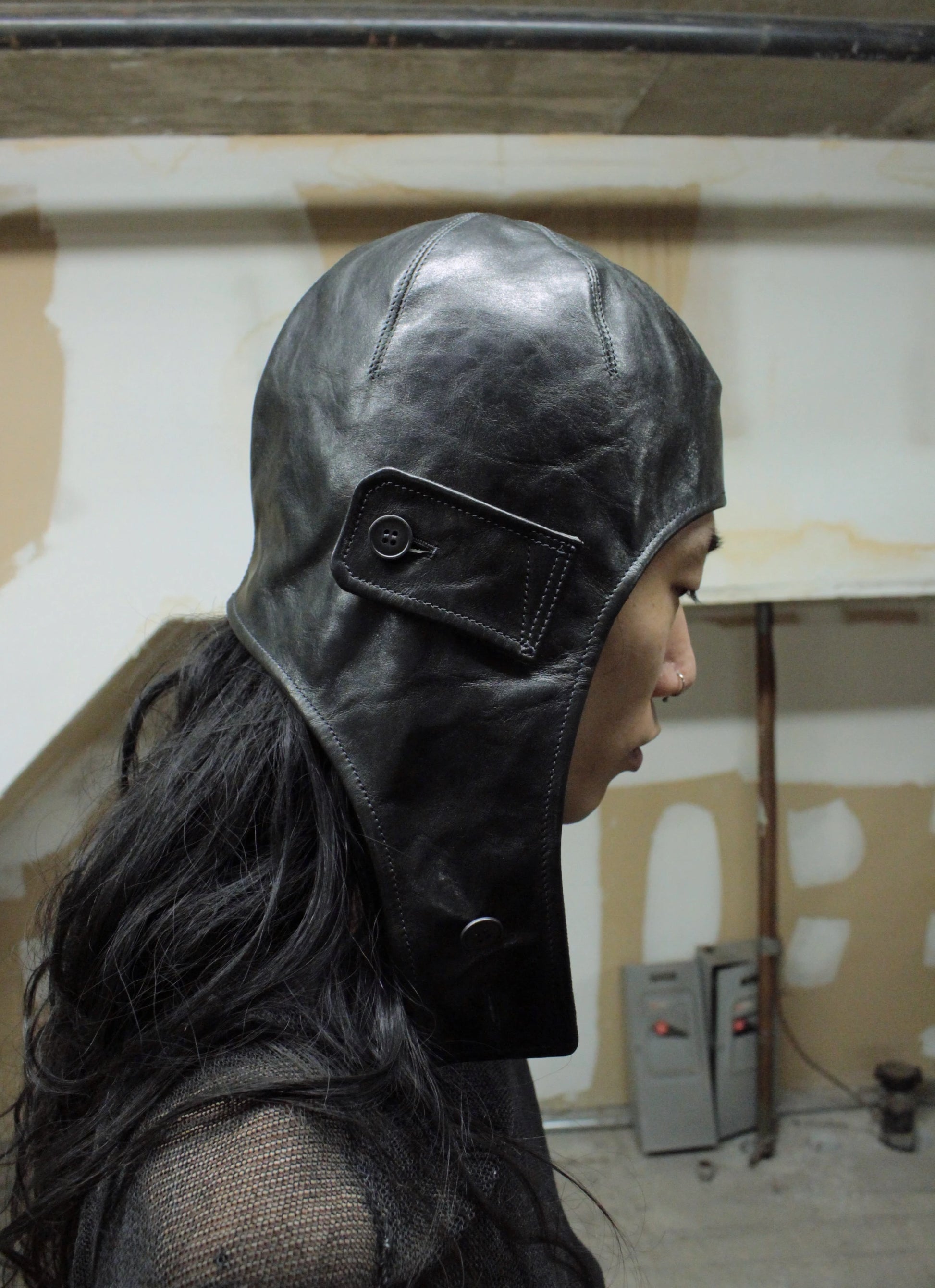 DEEPTI Collection °025-026 'LA–175R' Padded One-piece Horse Leather Aviator Hat
