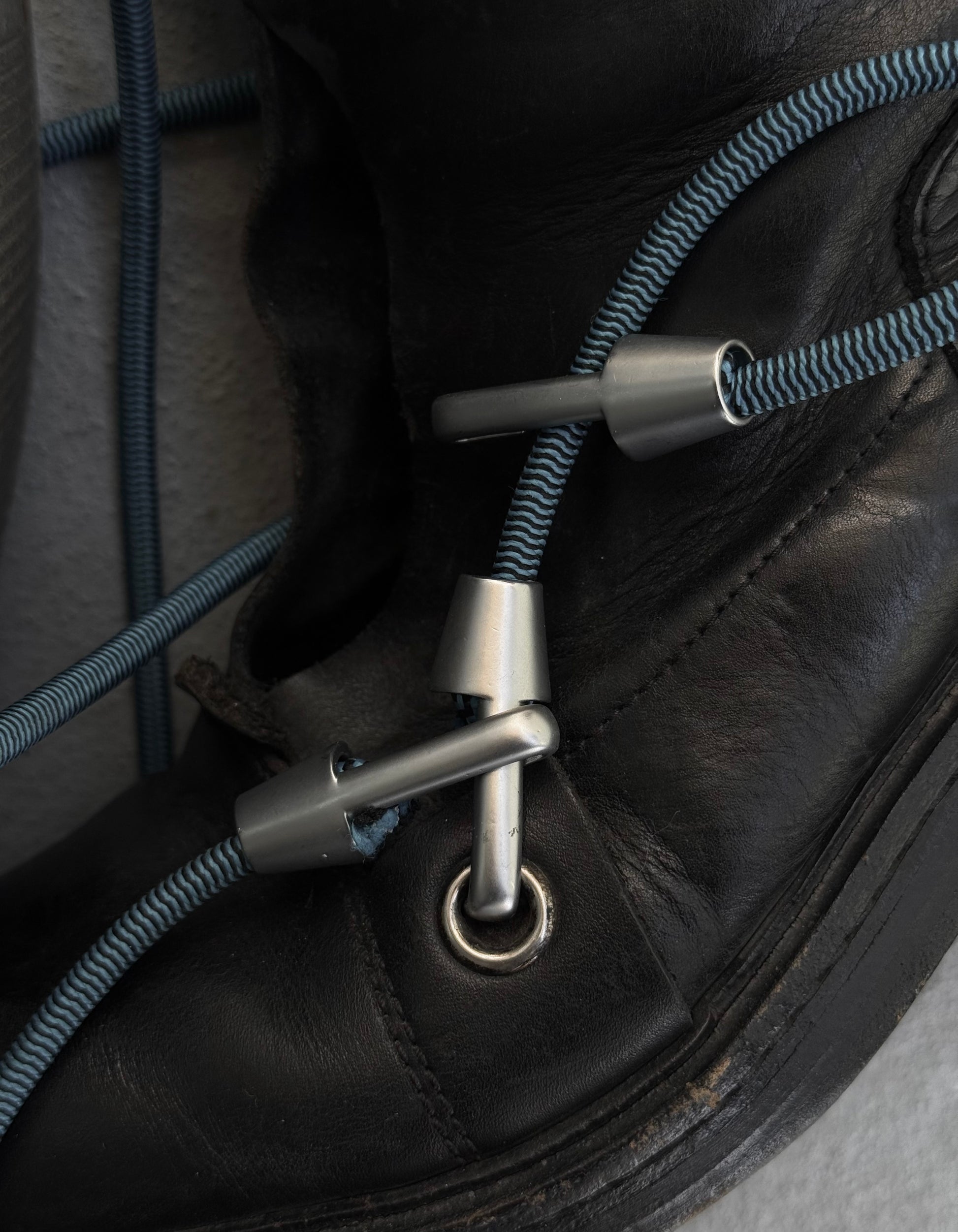 - Blue bungee cord hook closure
