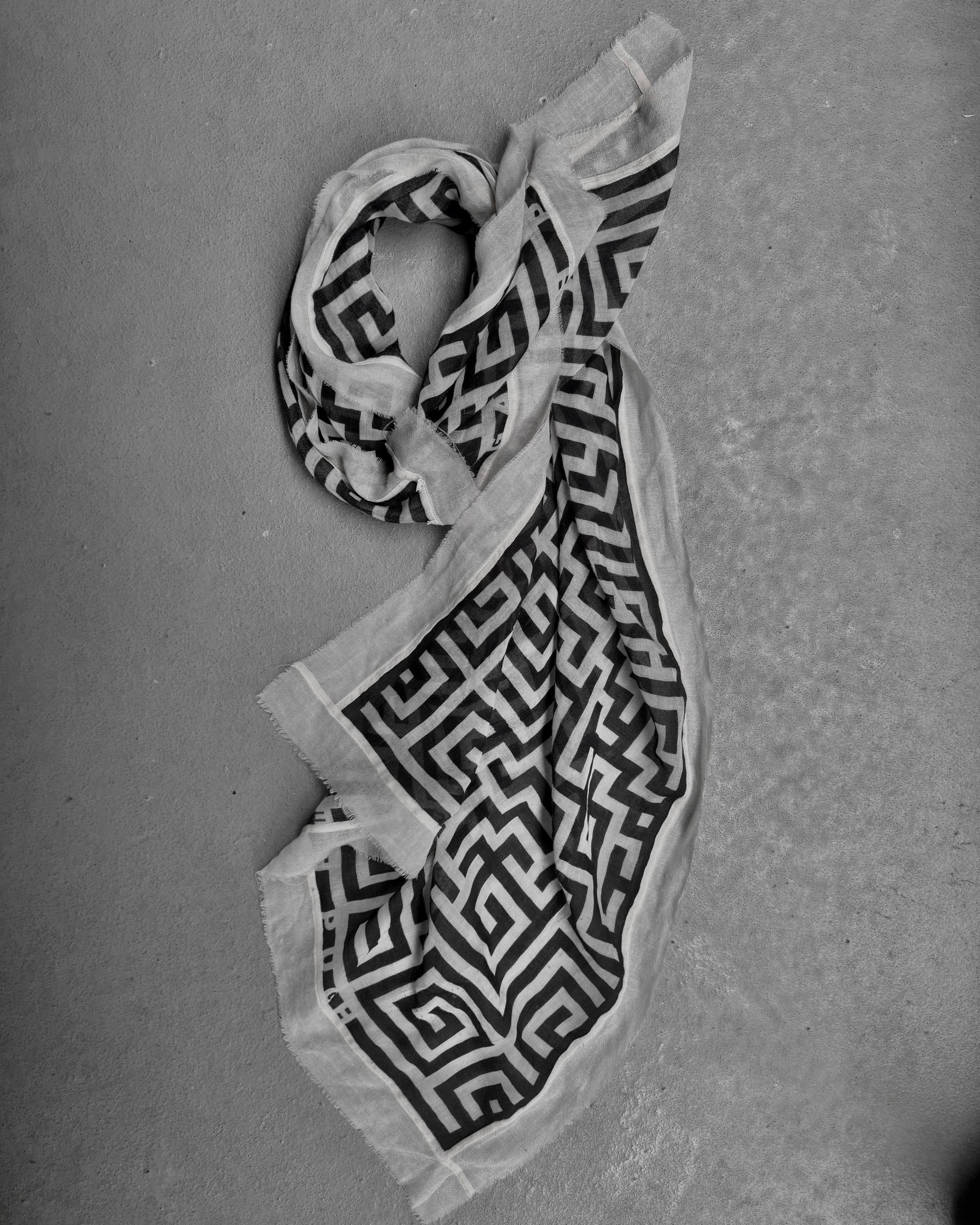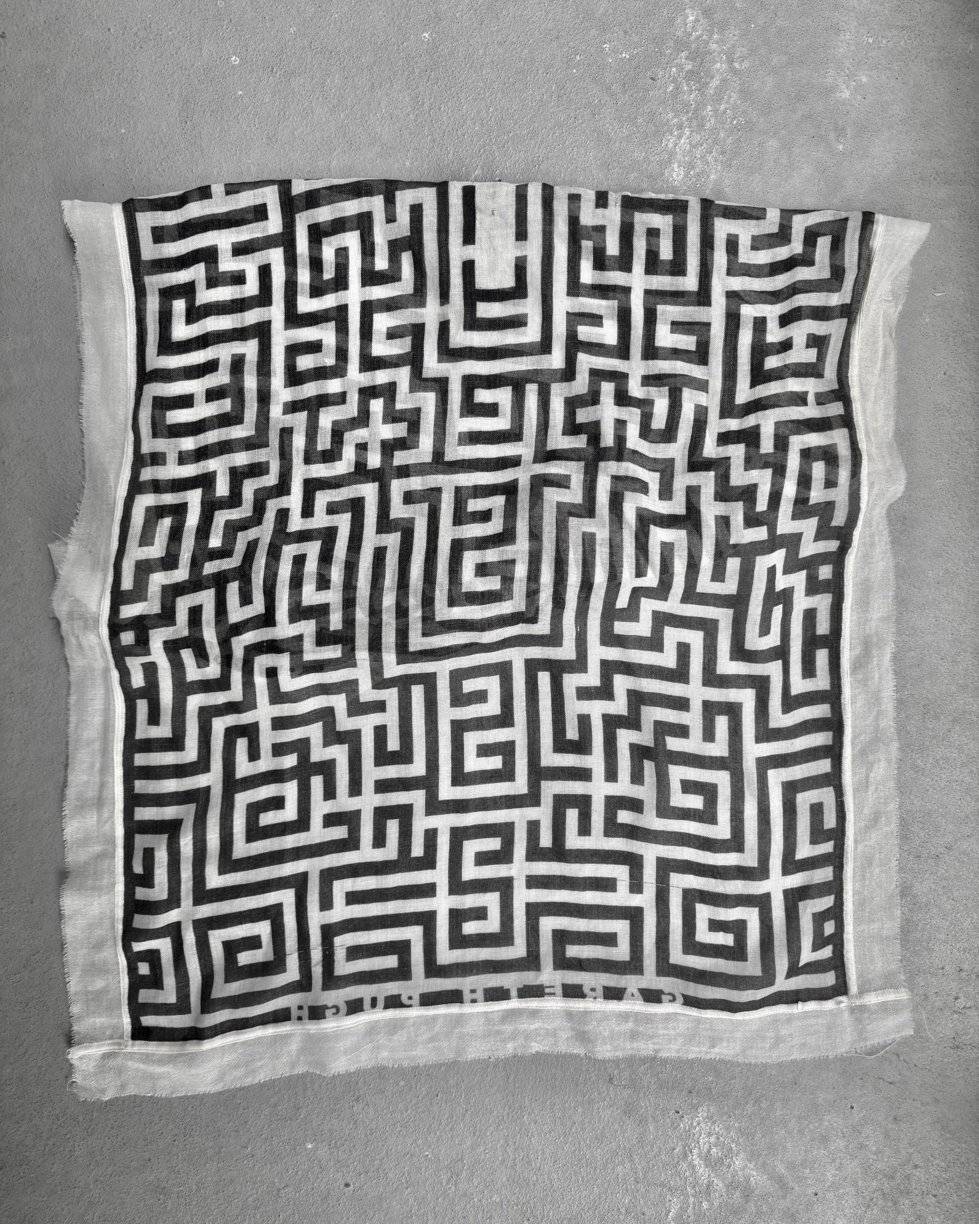 Gareth Pugh Early 00s Frayed Edge Maze Pattern Wool Scarf