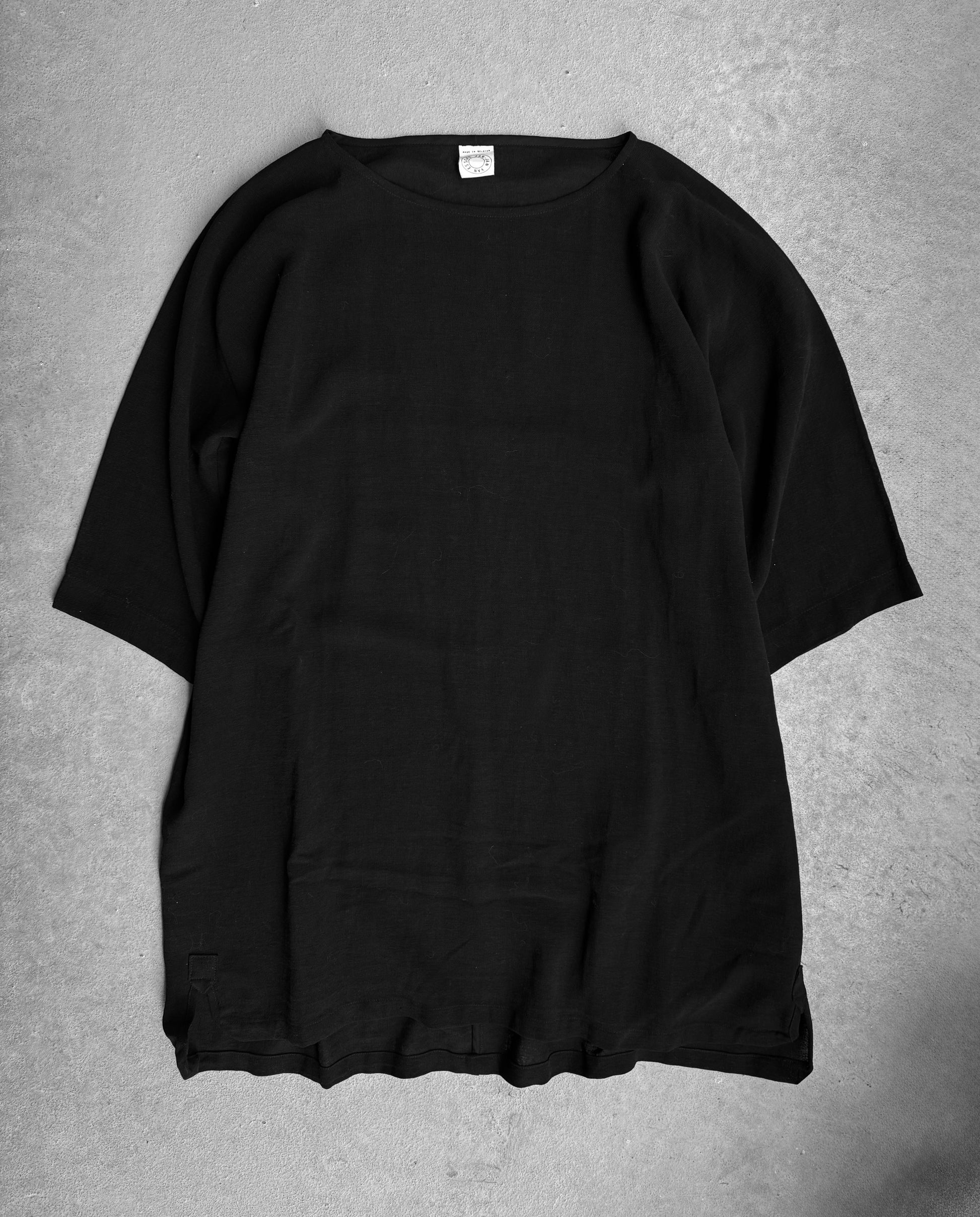 Belgian designer Jan-Jan Van Essche founded his namesake menswear label in 2010 after completing his studies at the Antwerp Royal Academy of Fine Arts. The minimalist brand pays tribute to various cultural practices through its innovative approaches to weaving and garment construction. Its signature fluid silhouettes feature minimal seams, and carefully selected fabrics emphasize natural tones and subtle textures. Waxed cotton lends durability to elegant outerwear, while luxurious wool textiles form the foundation for relaxed trousers and flowing pullovers. As a sensitive interpreter of traditional craftsmanship, Jan-Jan Van Essche presents a tranquil vision of luxury. This massive linen piece feels like you're throwing on a blanket. The oversized nature of this T-shirt creates a head-turning silhouette and an impressive flow during movement.