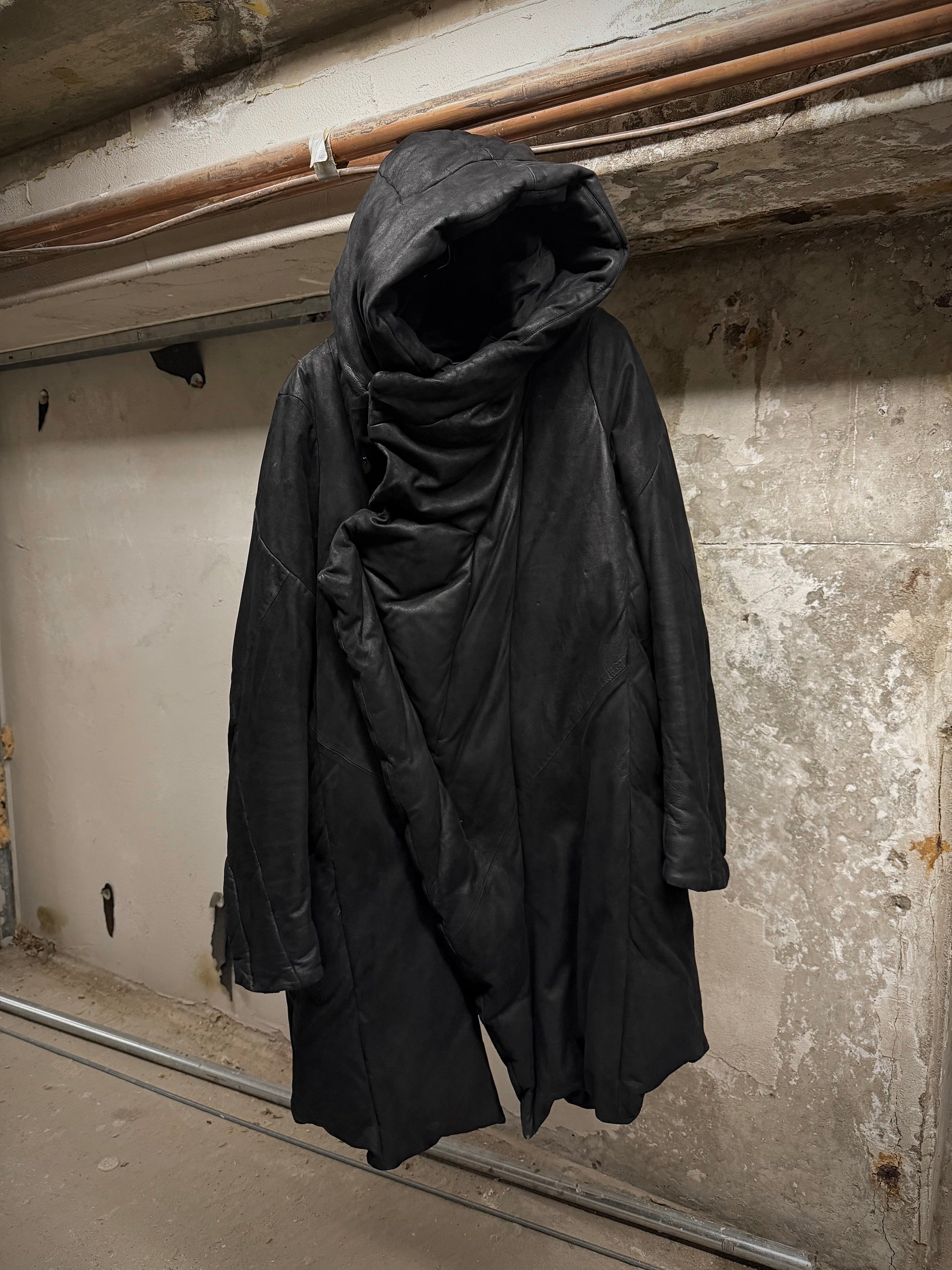 Julius_7 AW15-16 "sphere;" Hooded Lamb Nubuck Leather Down Puffer Jacket