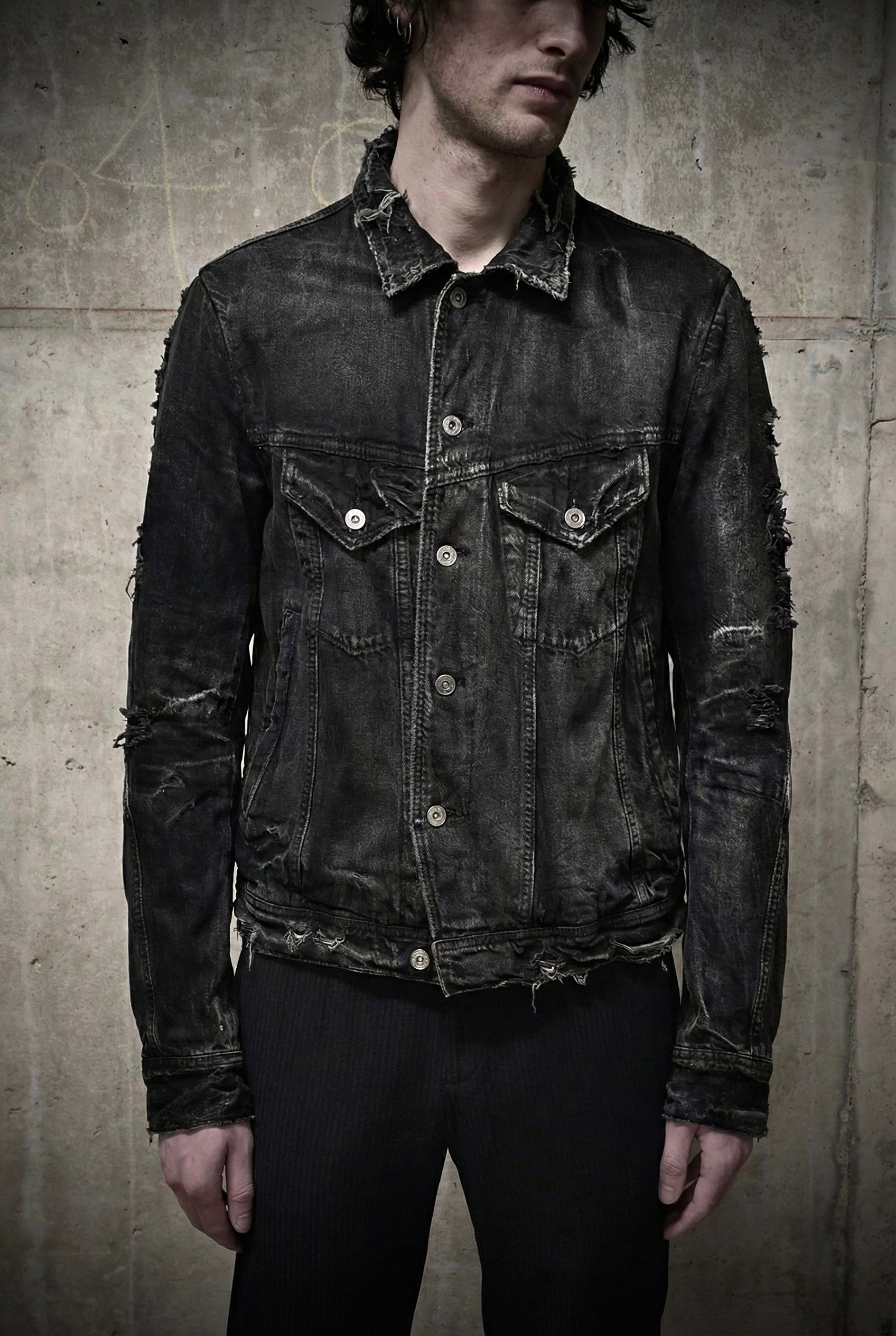 Julius_7 SS18 “Acid Glaciers;” Limited Edition Distressed 12oz Denim Trucker Jacket