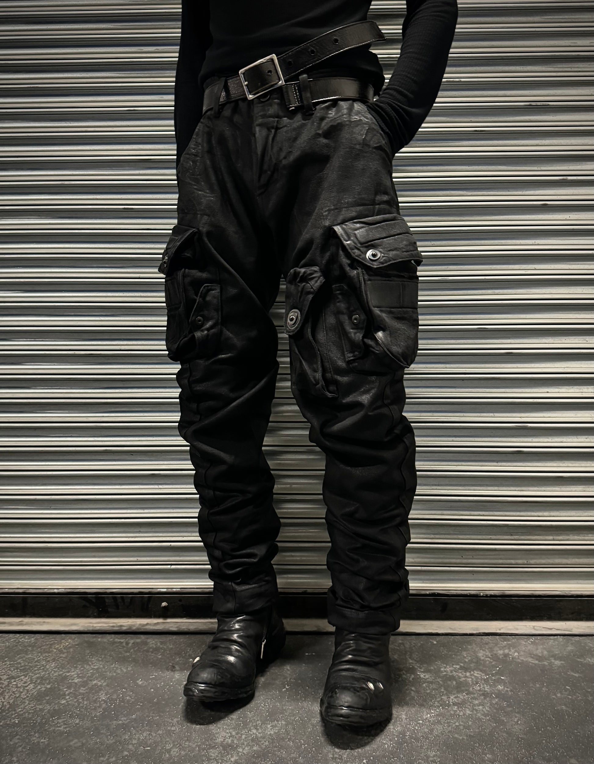 Julius_7 SS25 "_PERMANENT" Gas-Mask Coated Cargo Pants