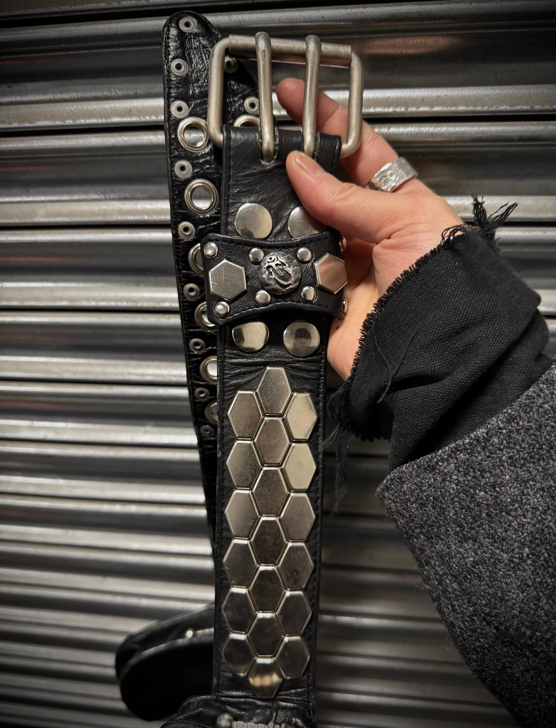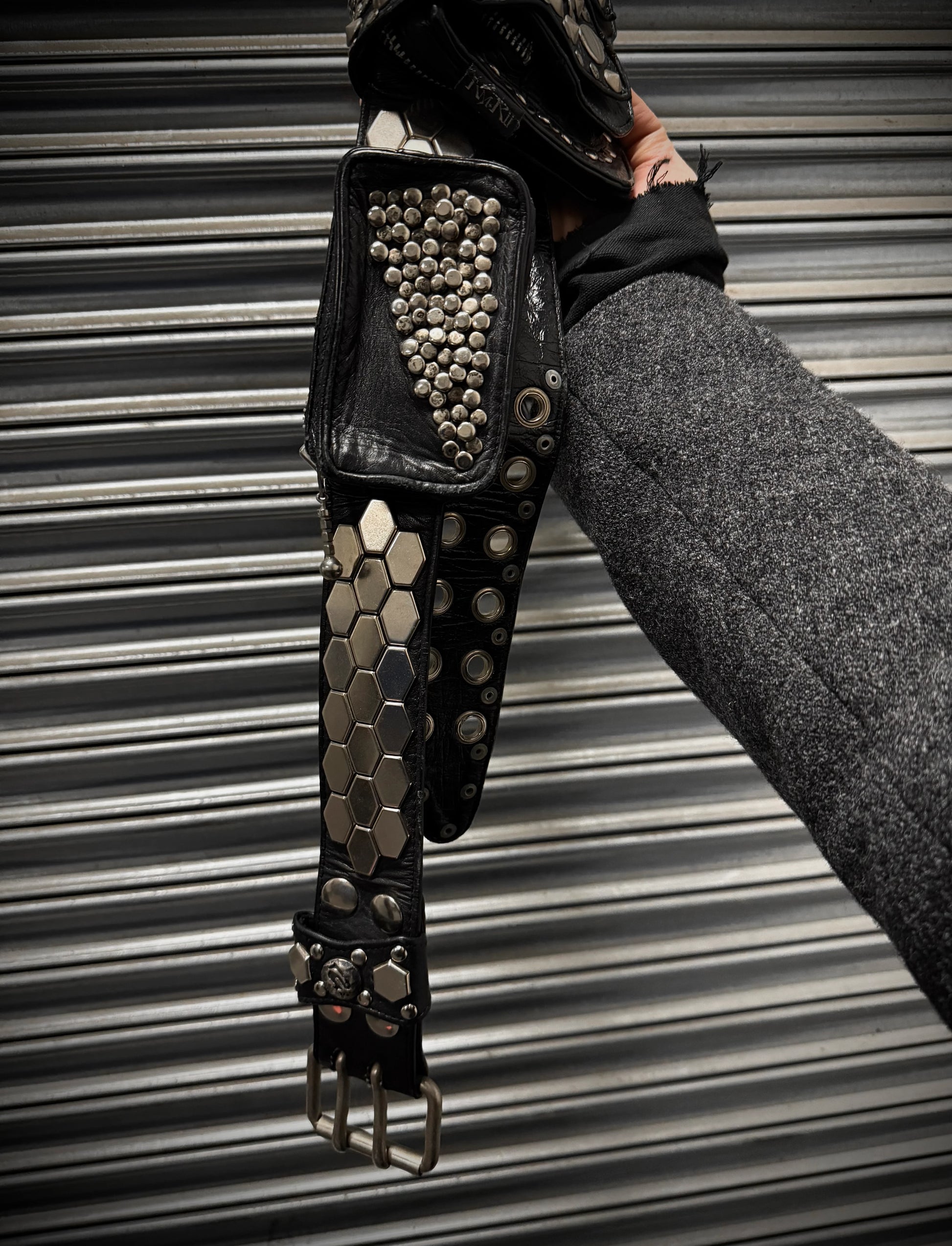 KMRii Early 00s "Out of Control" Studded Leather Honeycomb Pouch Belt Bag