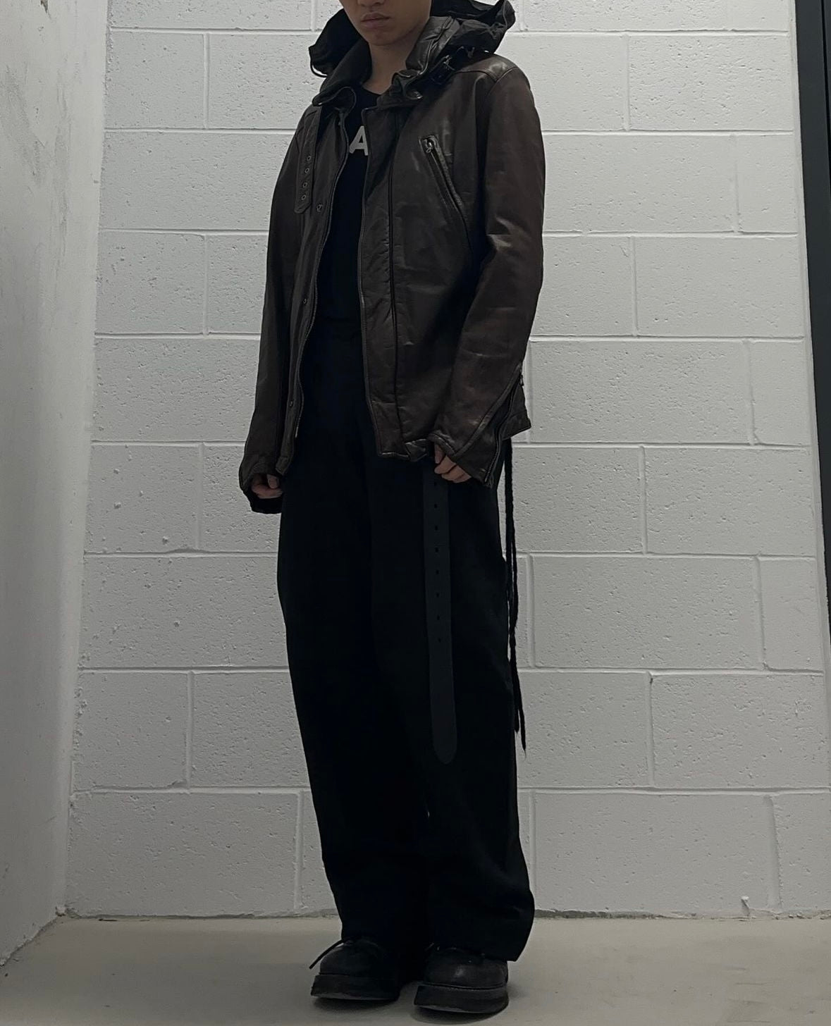 Kyoji Maruyama, a distinguished vintage Japanese fashion designer, seamlessly blends traditional aesthetics with contemporary trends. Renowned for meticulous craftsmanship and avant-garde designs, the brand embodies a harmonious fusion of past and present. Drawing inspiration from cultural motifs and historical styles, Kyoji Maruyama creates timeless pieces that evoke a sense of nostalgia while embracing modern sensibilities. With a dedicated following, the label stands as a testament to the enduring allure of Japanese fashion, showcasing the artistry of Kyoji Maruyama and its commitment to preserving and evolving sartorial traditions. The showcased piece was from Kyoji Maruyama’s early 2000s era, dated around Autumn/Winter 2008. The jacket is crafted with high quality cowhide leather, equipped with a hidden leather trimmed hood at neck, feature multiple two-way zippers at front for pockets accessible, resembling the classic Margiela’s five zippers leather jacket silhouette.