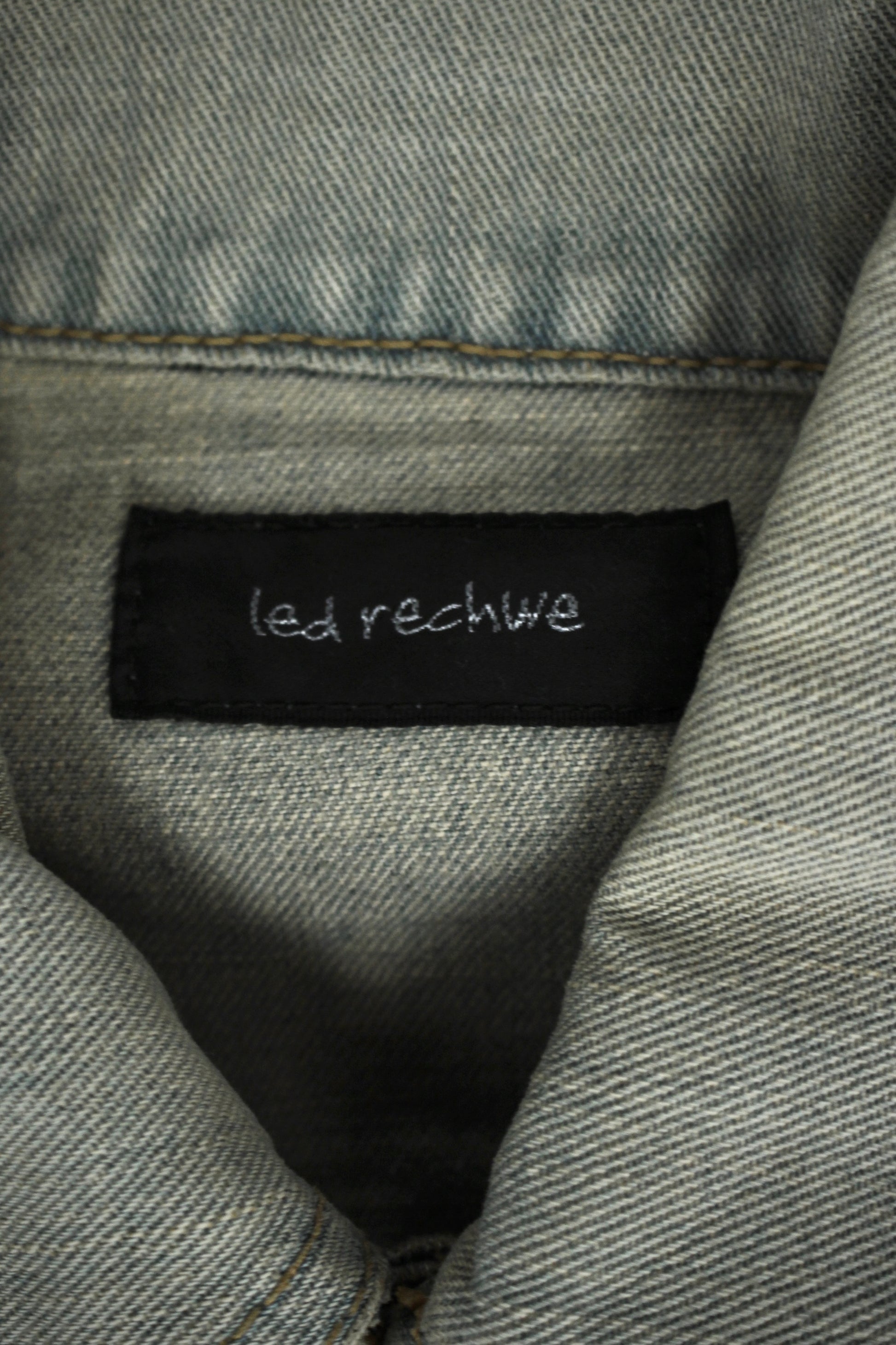 Founded in 2003 in Saitama, Japan LED RECHWE was an obscure Japanese fashion brand that drew inspiration from American and Japanese rock aesthetics, producing garments with distinctive denim treatments and bold silhouettes. Despite its unique designs, LED RECHWE remained relatively under the radar and ceased operations in the early 2010s. The brand’s designs were characterized by their experimental approach to denim, incorporating techniques like heavy waxing, mud washing, and crack effects to create a rugged, vintage look.